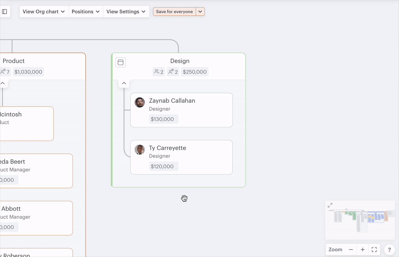 Any order or grouping you filter your people and positions table by can be exported directly to CSV in that order to share with relevant stakeholders such as your finance team.